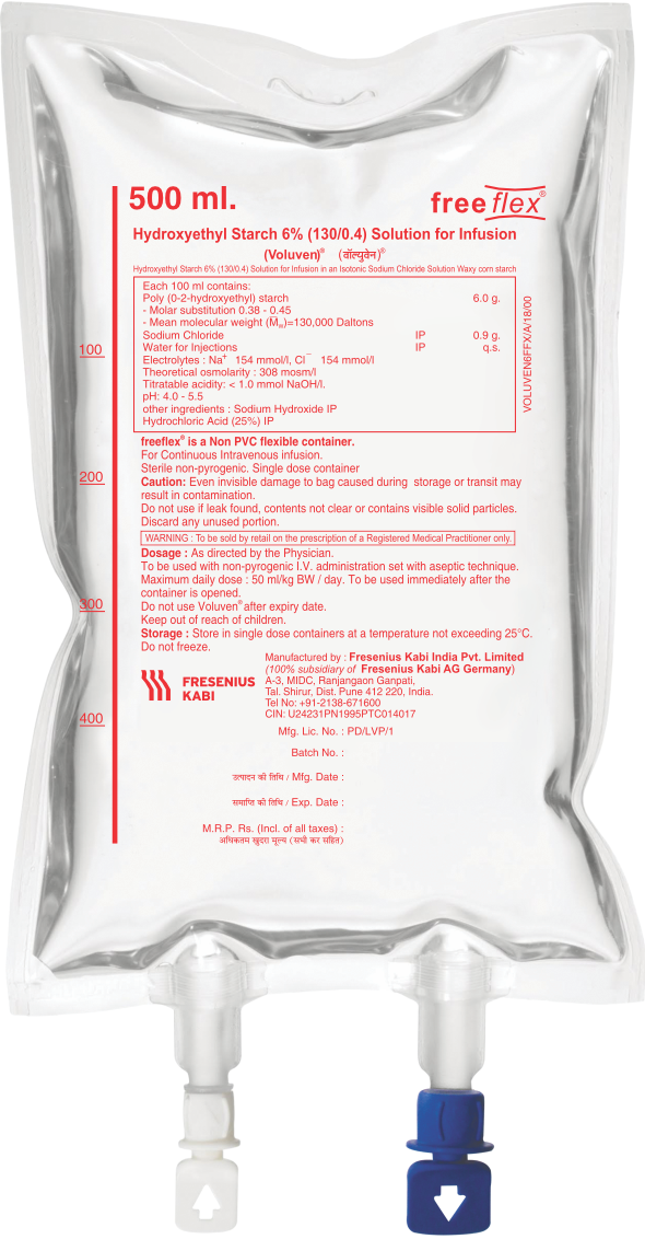 - 6% hydroxyethyl starch 130/0.4 in 0,9% sodium chloride solution