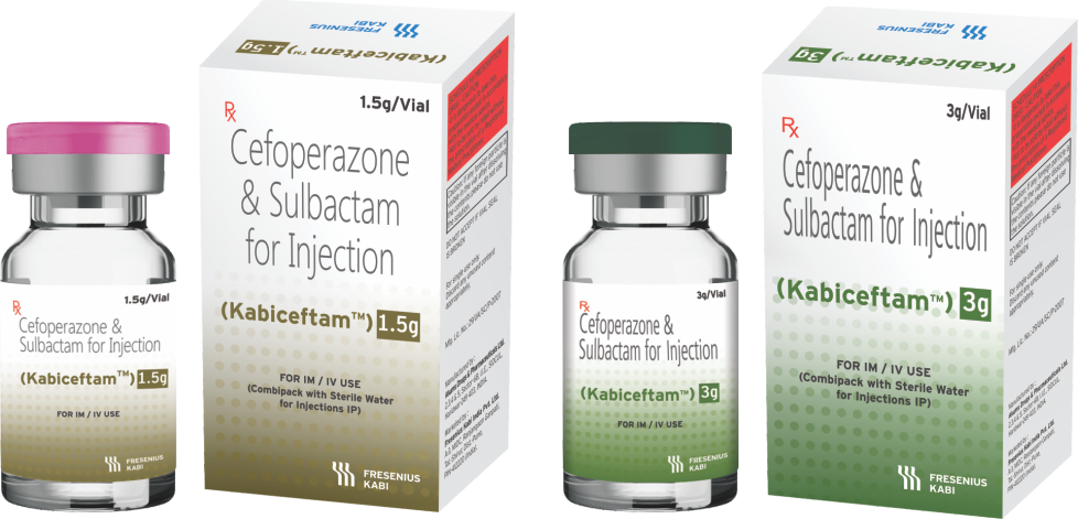 - Kabiceftam 1.5 g: Supplied as clear 20 ml USP type-III moulded glass vial with 10 ml SWFI.