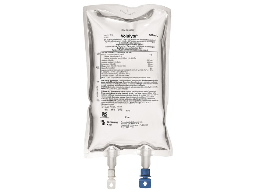 Major losses of blood volume (hypovolemia) due to surgery, burns, or traumatic injuries, must be corrected immediately by giving infusions with blood volume substitutes (such as hydroxyethyl starch, HES).