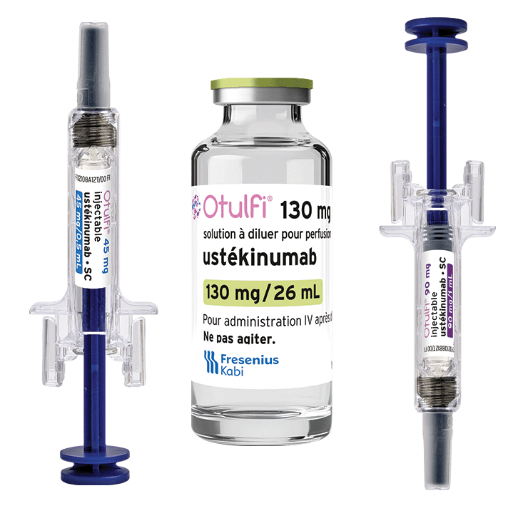 DCI : Ustékinumab Données et documents de référence (RCP et Notice) disponibles sur la Base de Données Publique des Médicaments : OTULFI 45 mg, solution injectable en seringue préremplie OTULFI 90 mg, solution injectable en seringue préremplie OTULFI 130 mg, solution à diluer pour perfusion